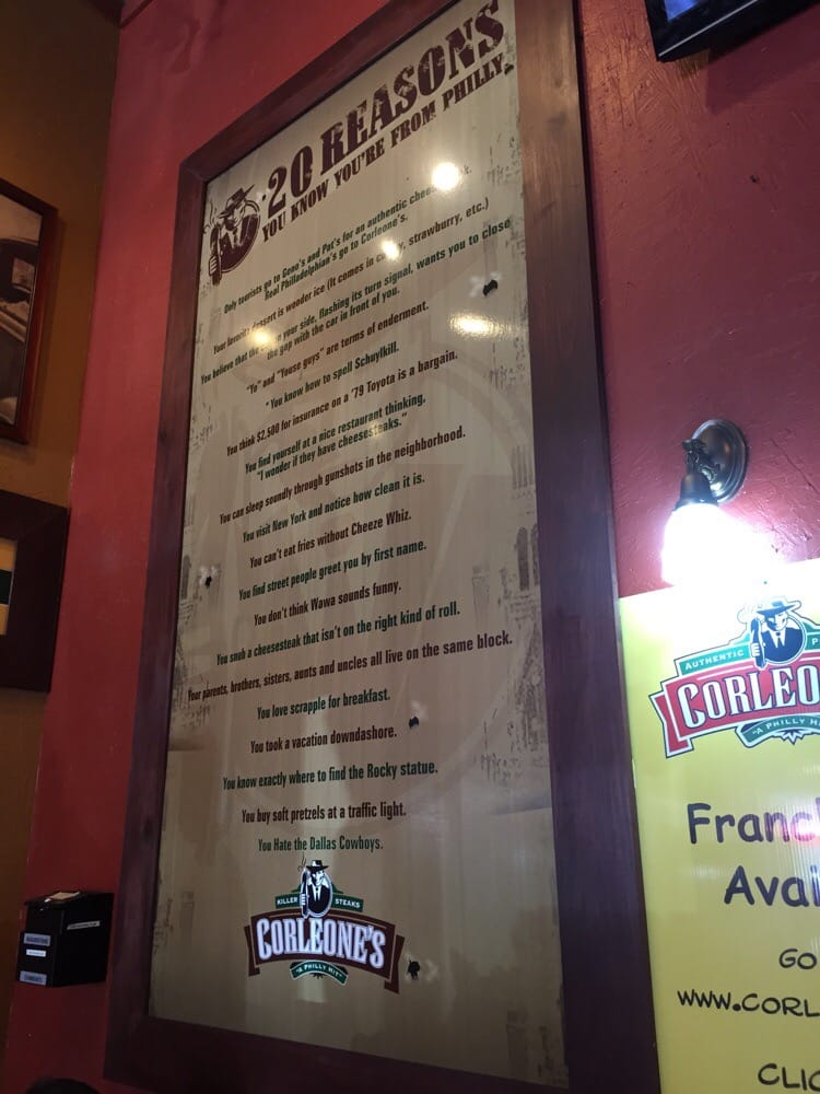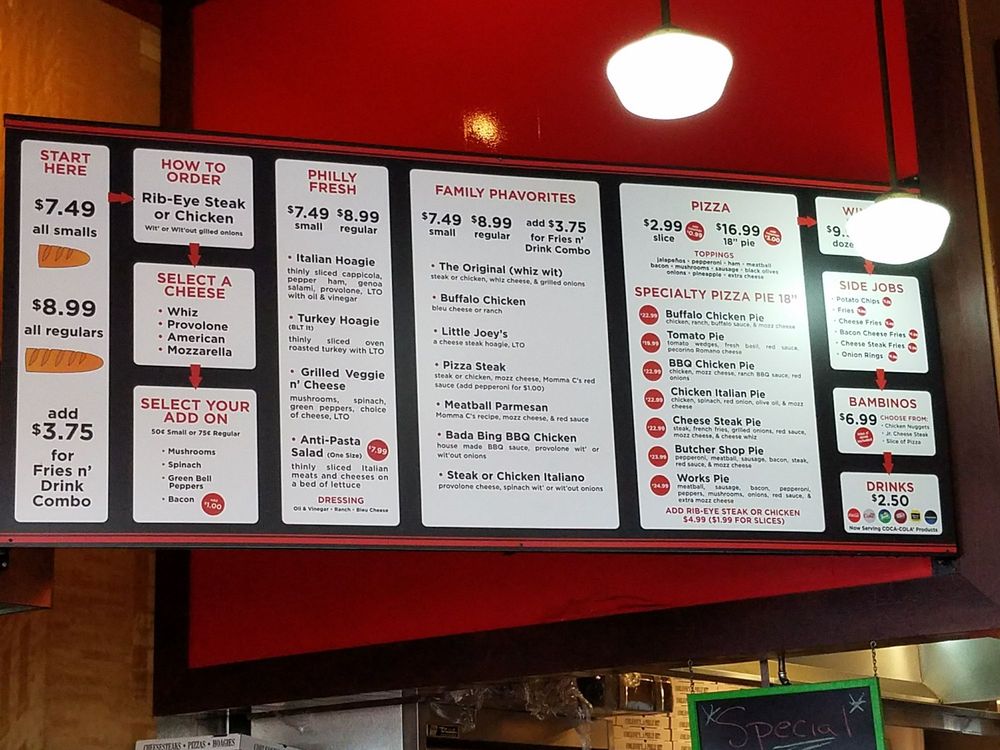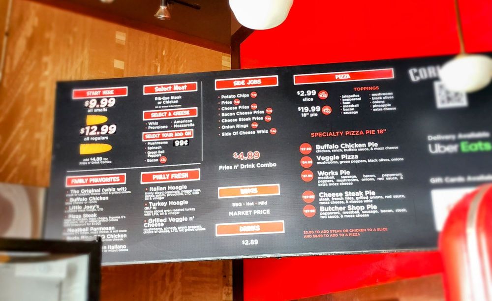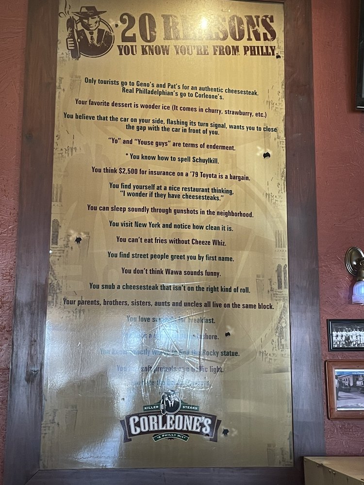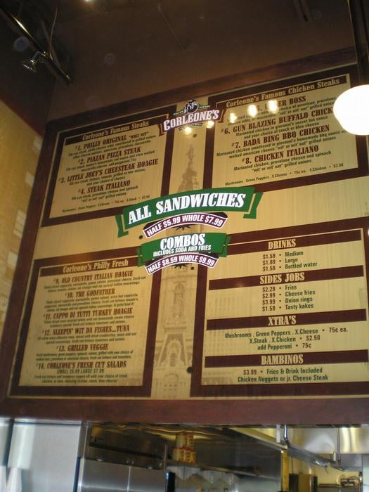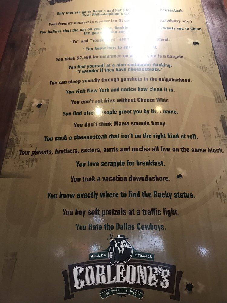Corleone's, located in Phoenix, offers a variety of delicious options with a focus on their famous Philly cheesesteaks and pizza. The menu includes unique 18" specialty pizzas like the Buffallo Chicken Pie and the Works Pie, as well as classic favorites like the Cheese Steak Pie. Customers rave about the friendly staff and the fresh ingredients used in their sandwiches. The option to customize your sandwich with a toppings bar adds an extra layer of enjoyment to the dining experience. With options for delivery, takeout, and outdoor seating, Corleone's is a versatile spot for a casual meal. Whether you're craving a cheesy slice of pizza or a hearty cheesesteak, Corleone's has something to satisfy your cravings.